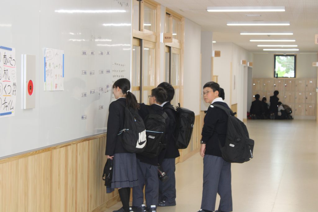 朝のさわやかなあいさつとともに、生徒たちが元気に登校してきました。友だちや先生に「おはようございます!」と声をかけ合う姿から、今日も一日が気持ちよくスタートします。校内に入ると、今日の課外活動をどの場所で行うのかを確認し、ホワイトボードに自分のマグネットを一人ひとり貼っていきました。自分で選び、行動する姿に主体性を感じます。