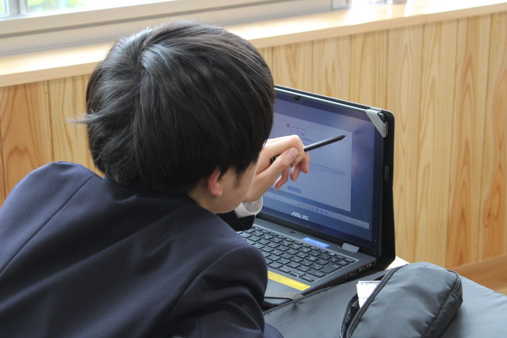 朝、登校してきた生徒たちは、教室に入るとまずタブレットを開きます。その日の時間割、提出物、各教科からの連絡事項を確認し、今日一日をどのように過ごすのかを考えます。